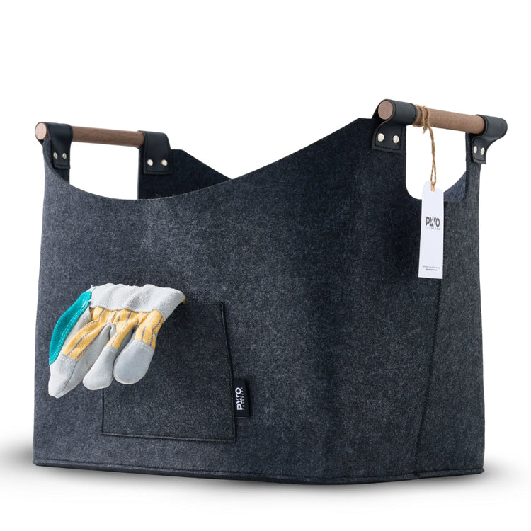 Alle ansehenEen woonkamer raakt snel rommelig door rondslingerende dekens, speelgoed of losse spullen. De PyroProducts® Opbergmand brengt direct orde en stijl terug. Gemaakt van stevig en vormvast vilt met een royale inhoud van 60 liter biedt deze luxe mand ruimte voor dekens, speelgoed, tijdschriften, wasgoed en indien gewenst ook haardhout. De houten handvatten zorgen voor comfortabel en veilig dragen, zelfs bij 20 tot 30 kilogram inhoud. De antracietkleur en het strakke ontwerp passen in elk modern interieur.
